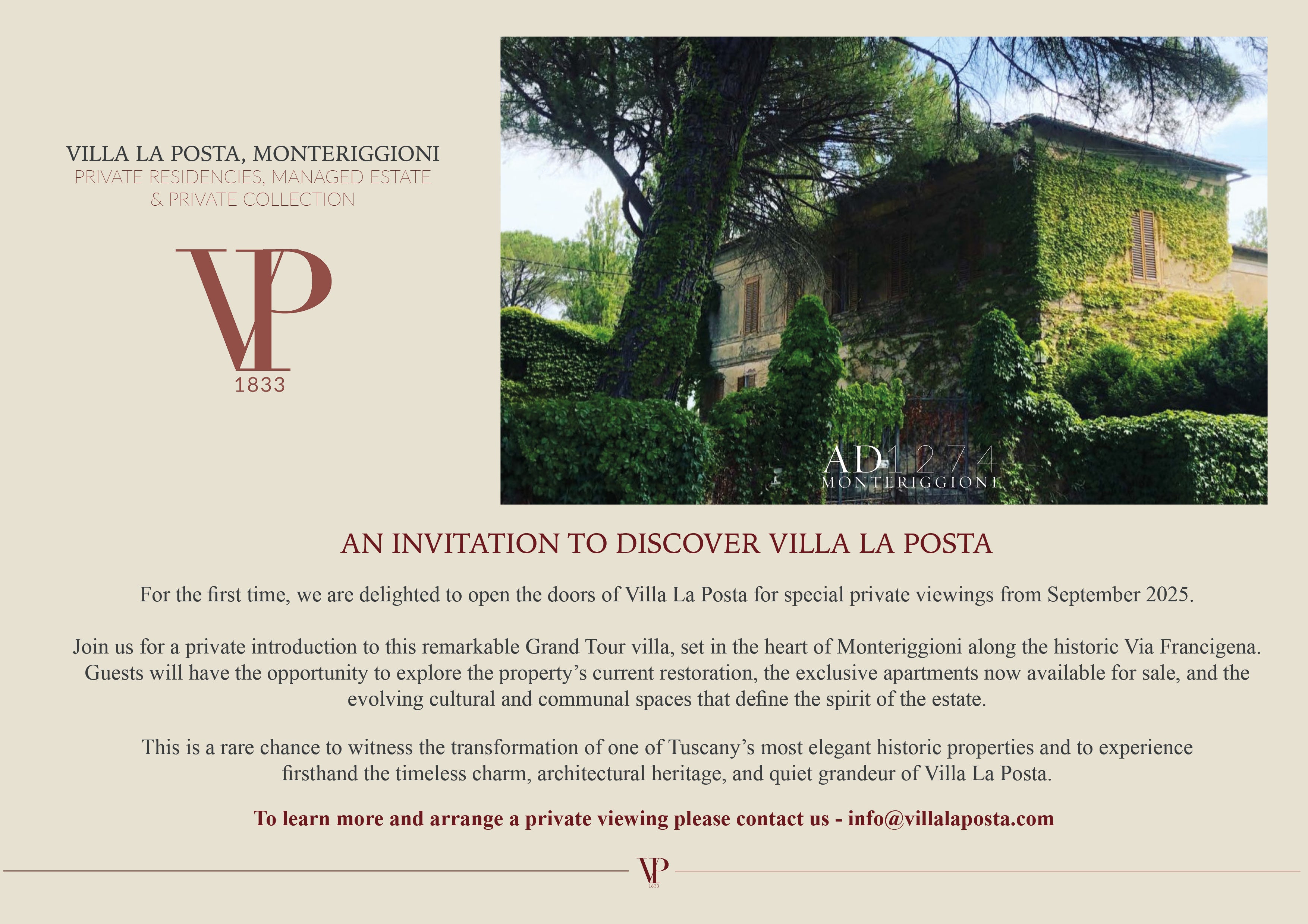 Subscribe to our newsletter, Monteriggioni 1833